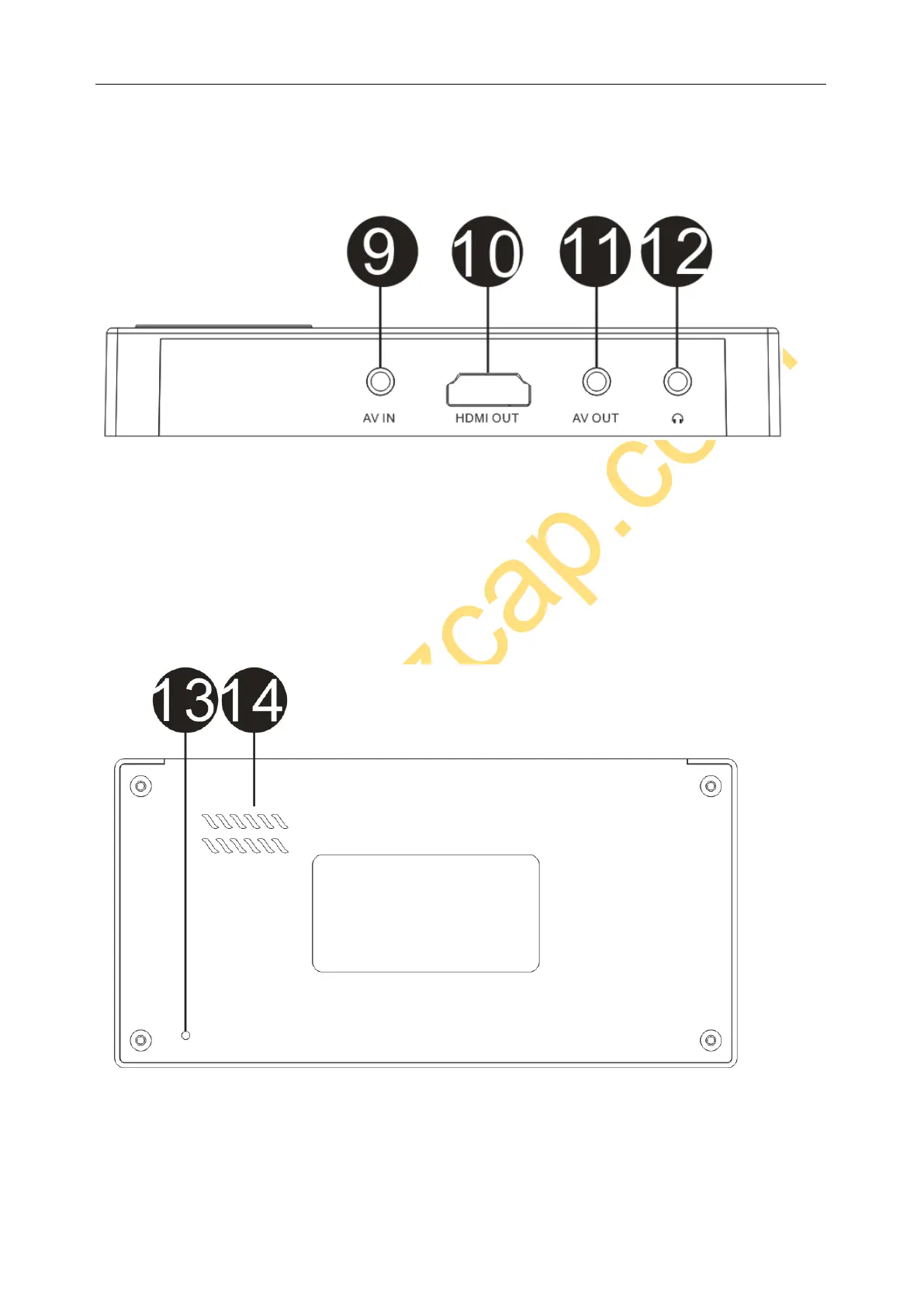 11. AV OUT – Connect to TV monitor displaying