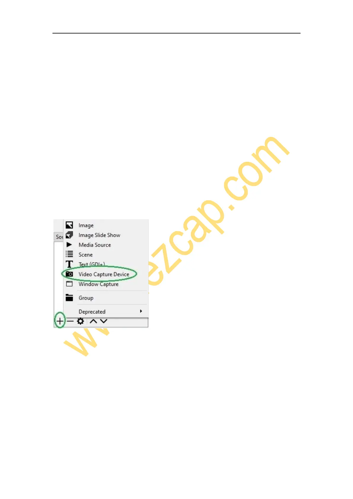 Click icon +under Sources window at the bottom left of OSB panel, and select Video