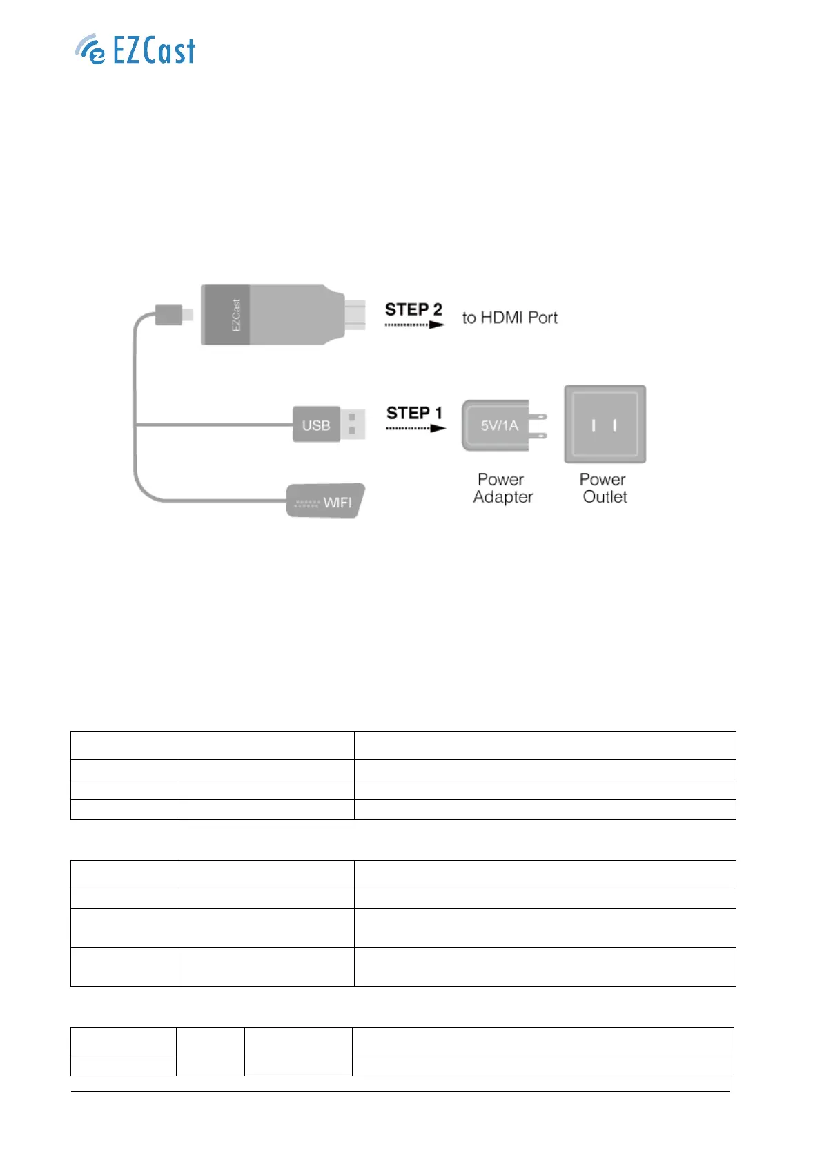 - EZCast 2 to power: Connect the micro USB port to power and Wi-Fi module