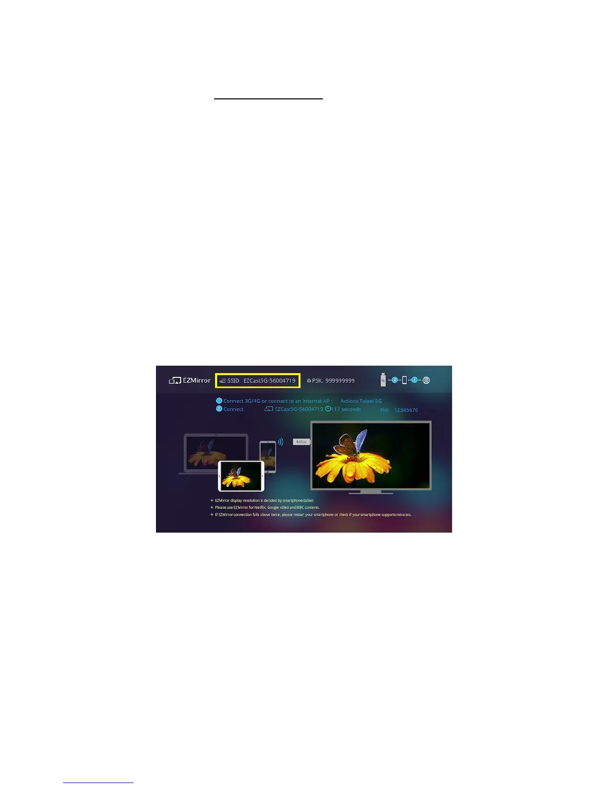 EZCast Dongle. The SSID could be found on above