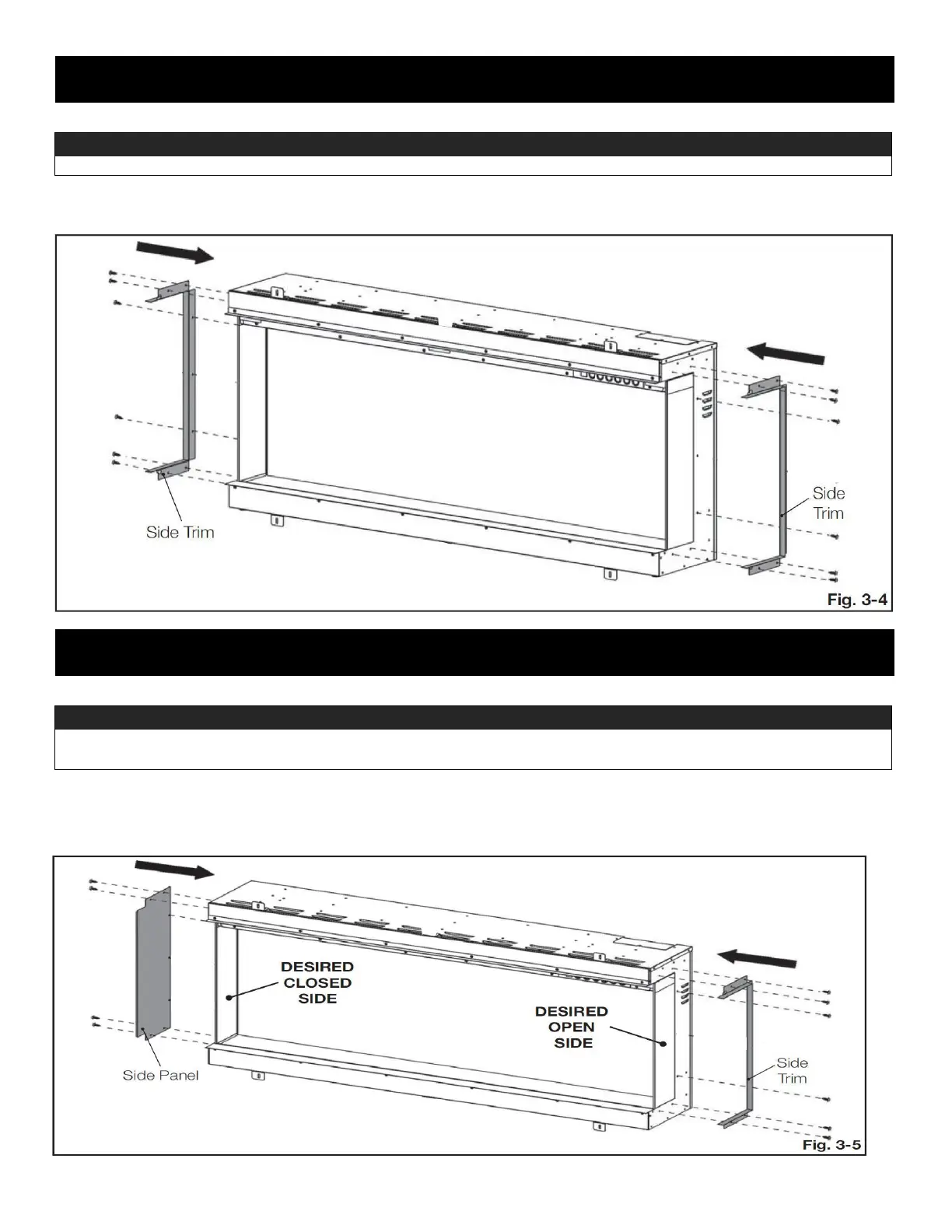 1.For desired open side, re-secure the side trim using the 6 screws previously removed (Fig. 3-5).