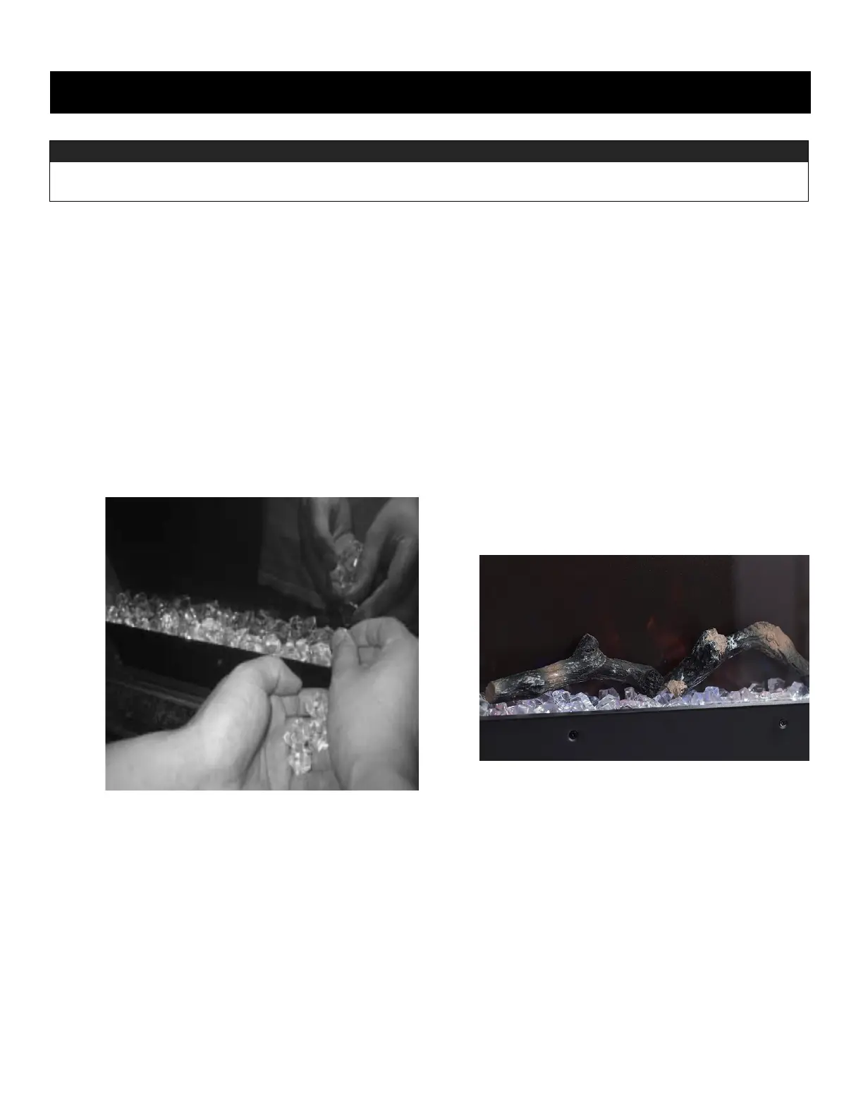 The appliance must be installed in its final location before the crystals, artificial logs and charred