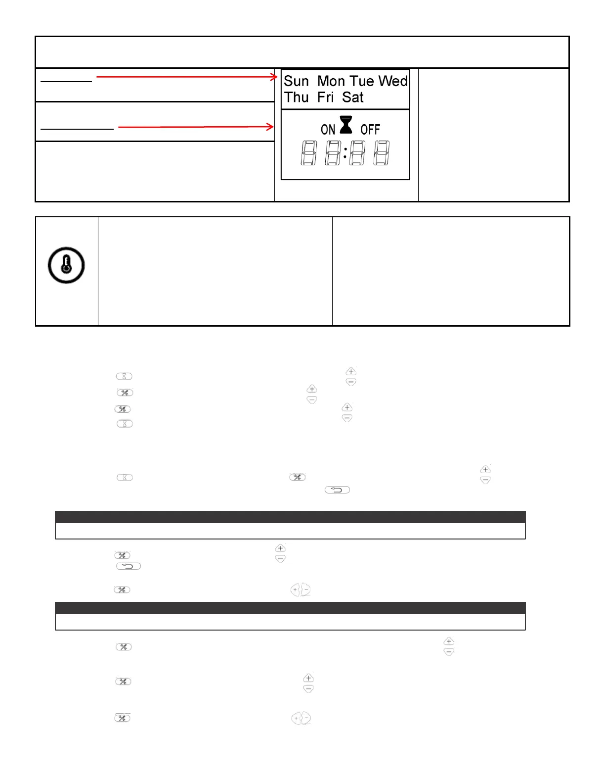 the desired hour and minute to turn on the heater. Press