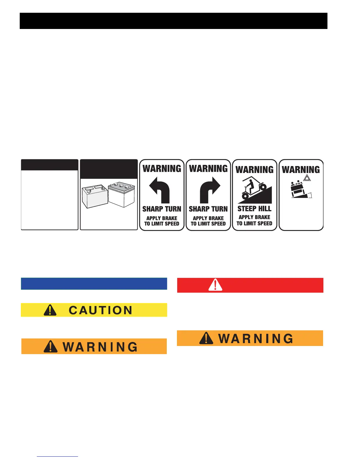 Read and understand all labels located on the vehicle. Always replace any damaged or missing labels.