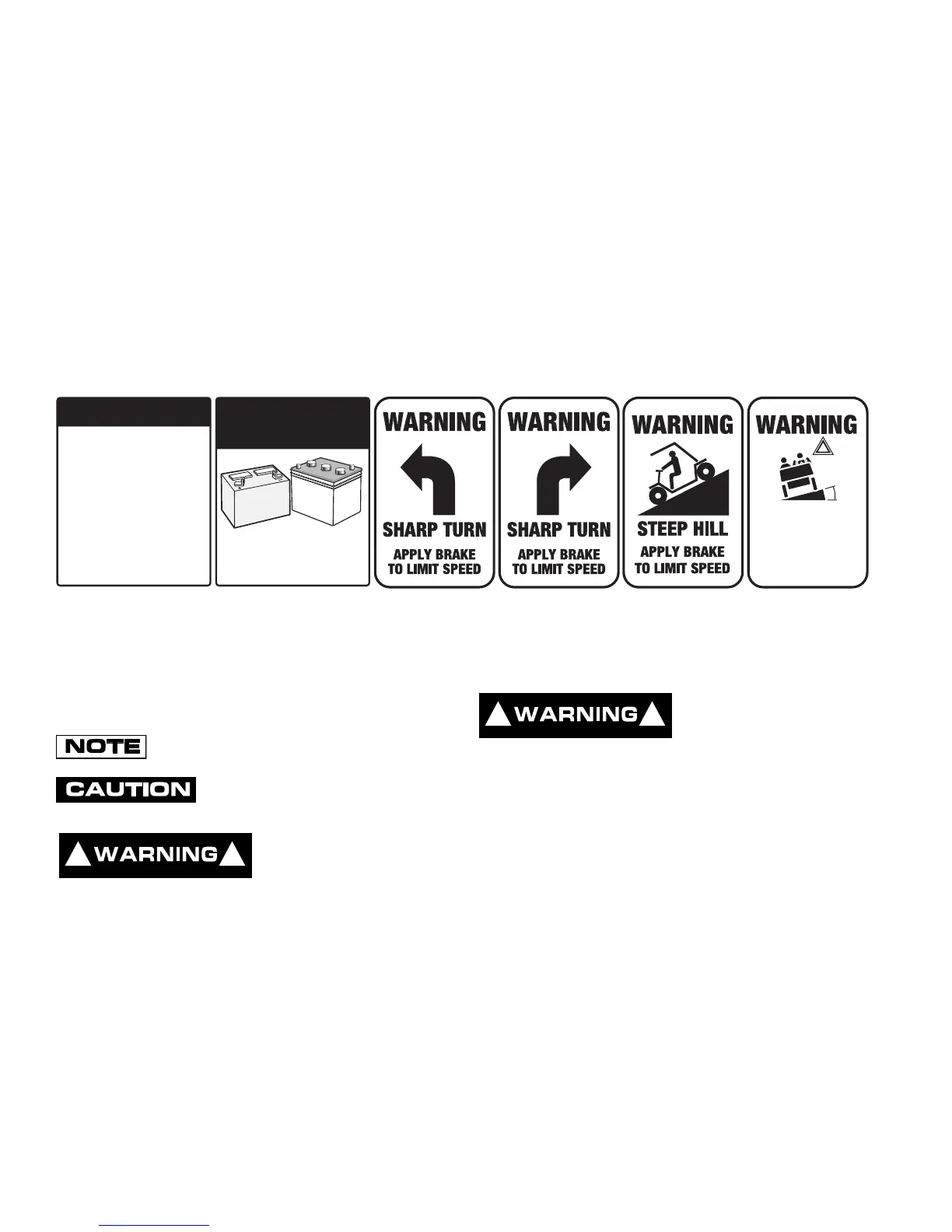 Signs similar to the ones illustrated should be used to warn of situations that could result in an unsafe condition.