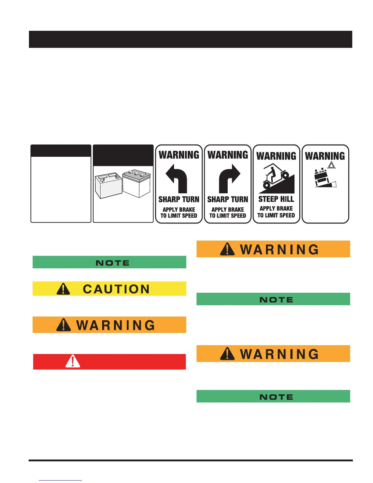 Read and understand all labels located on the vehicle. Always replace any damaged or missing labels.