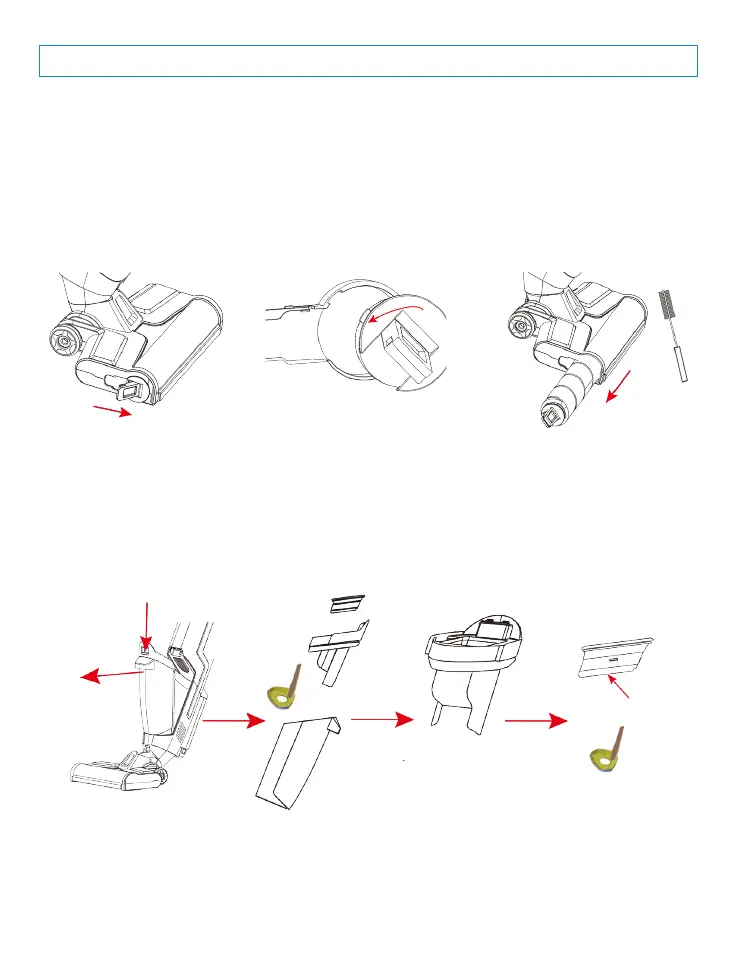 Appuyer sur le bouton de déblocage du réservoir d’eau sale et retirer les éléments internes.