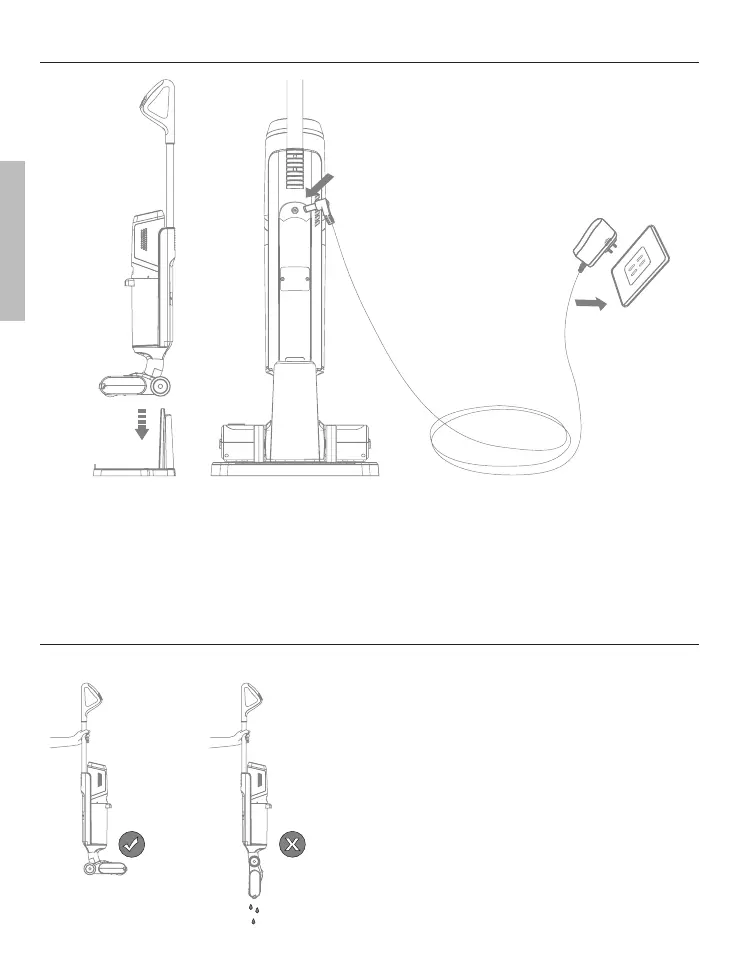 Place the unit on its storage base and connect the adapter to the back of the unit. Plug the unit into an electrical