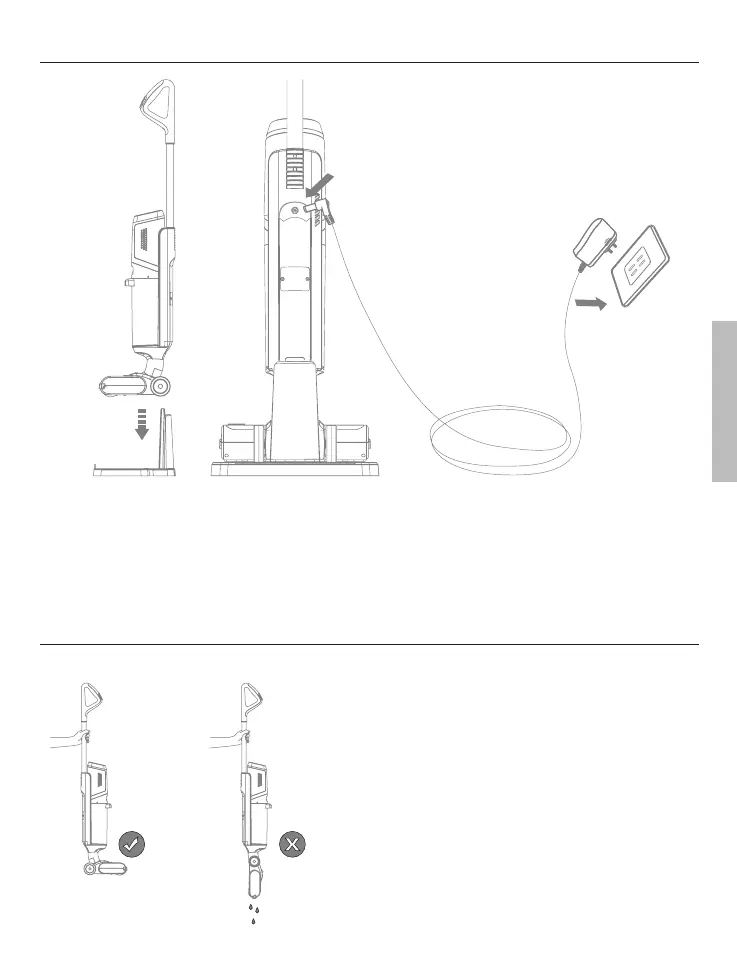 Coloque la unidad en su base de almacenamiento y conecte el adaptador a la parte posterior de la unidad. Enchufa