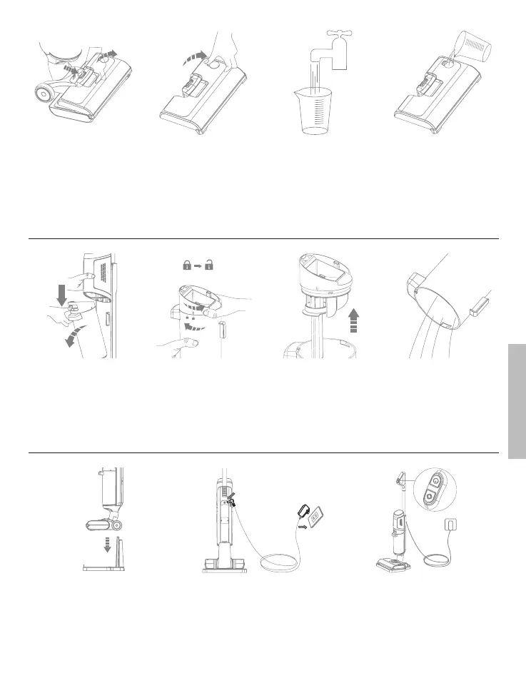 Es wird empfohlen, den Wassertank mindestens 1/4 voll zu machen und den Schmutzwassertank zu leeren, bevor Sie die