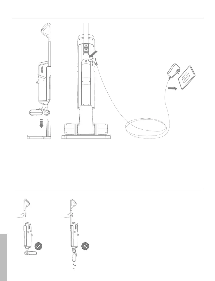 Plaats het toestel op de opbergbasis en sluit de adapter aan op de achterkant van het toestel. Steek de stekker van