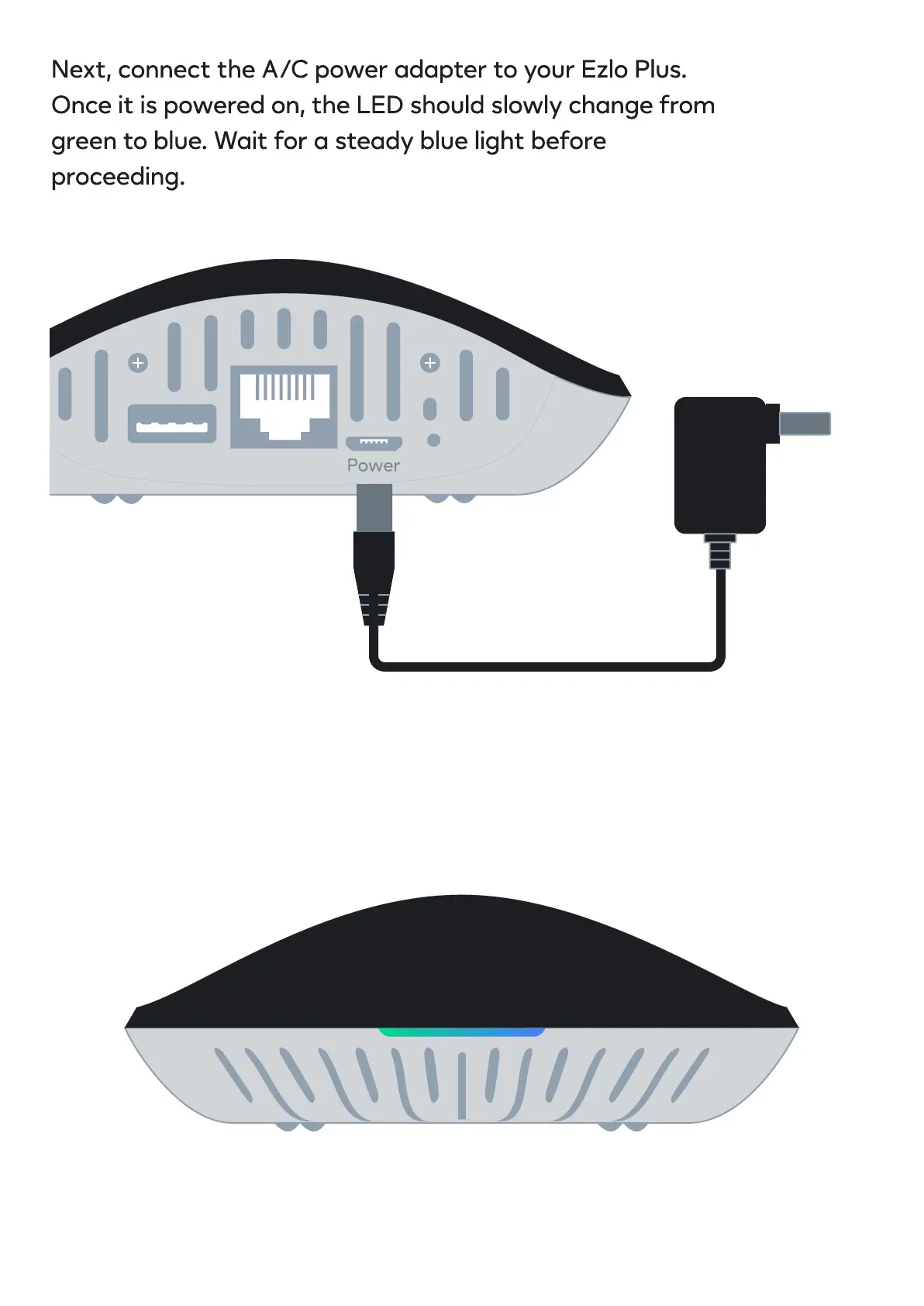 Next, connect the A/C power adapter to your Ezlo Plus.
