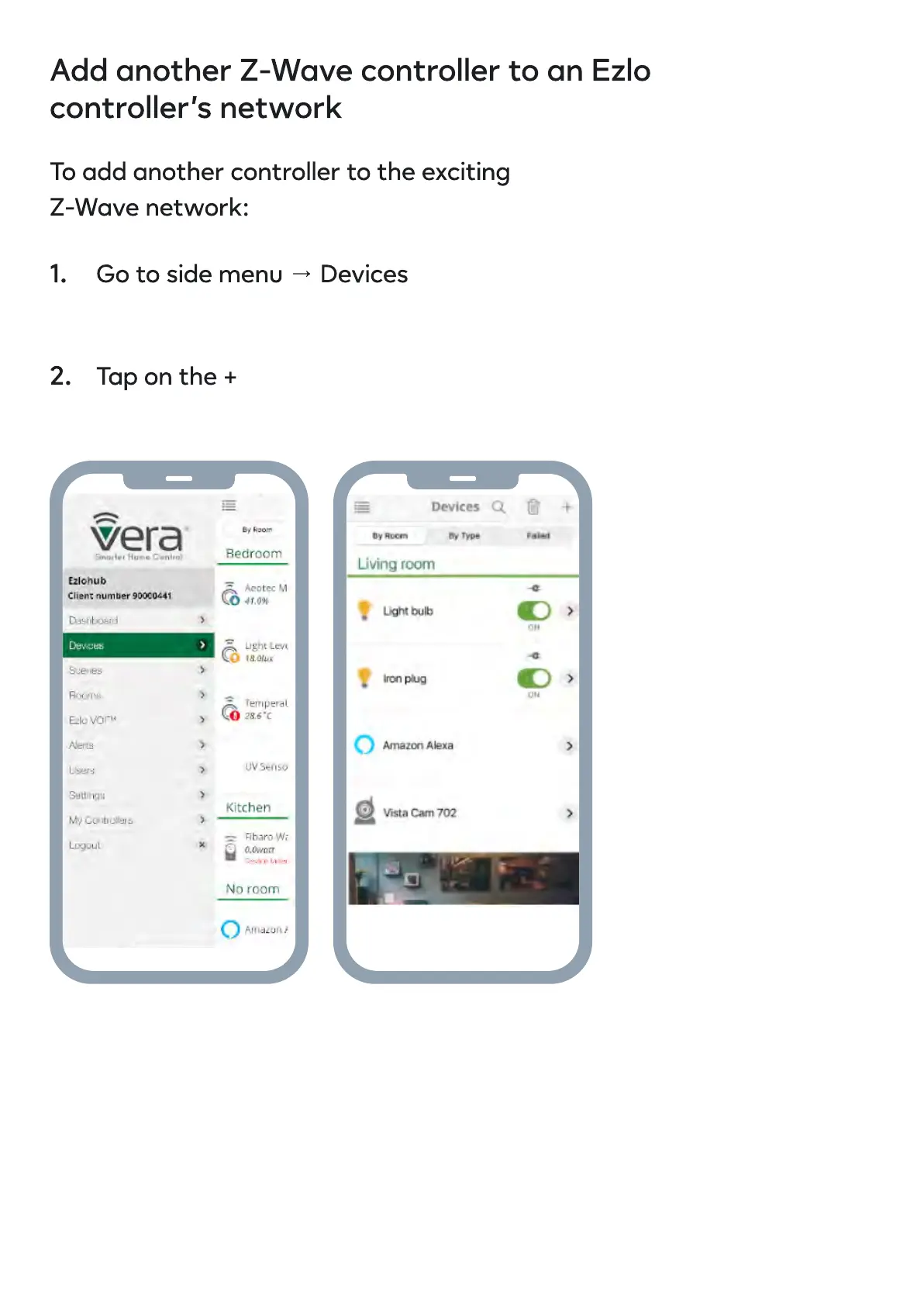 eZLO Plus - Add Another Z-Wave Controller to Ezlo Network; Navigate to Devices and Add New (+)
