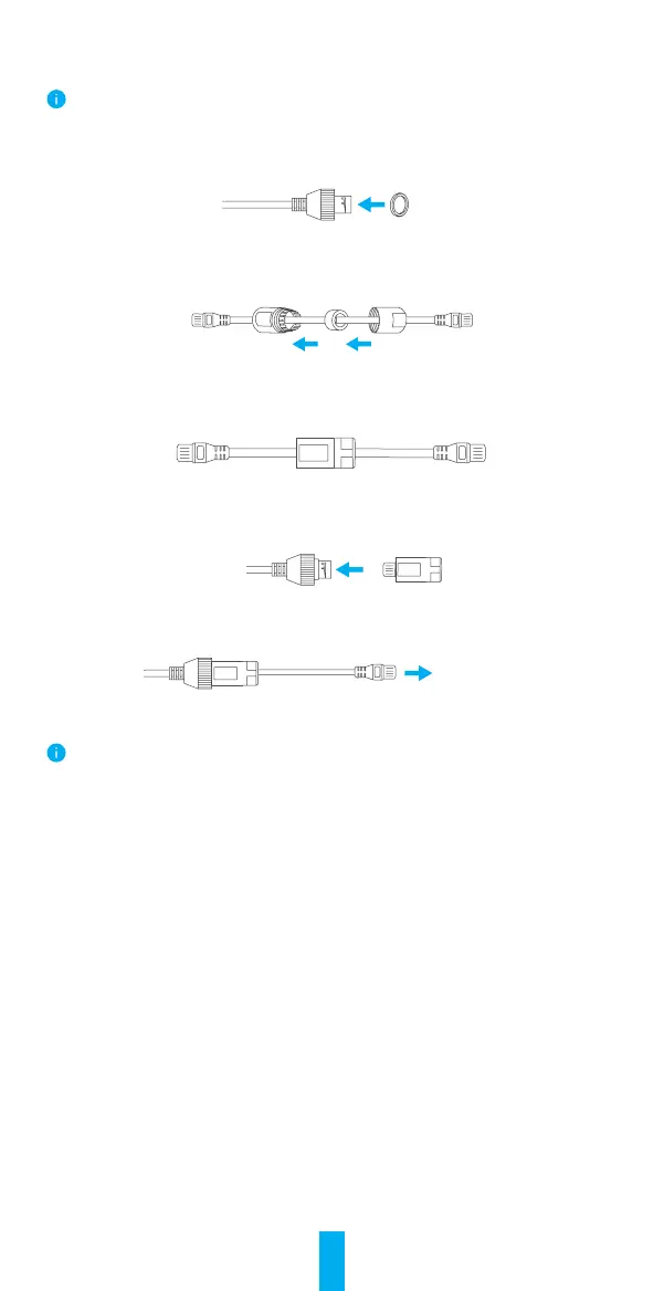 - Przełóż wtyk A przewodu Ethernet przez nakrętkę, uszczelkę i kołpak.