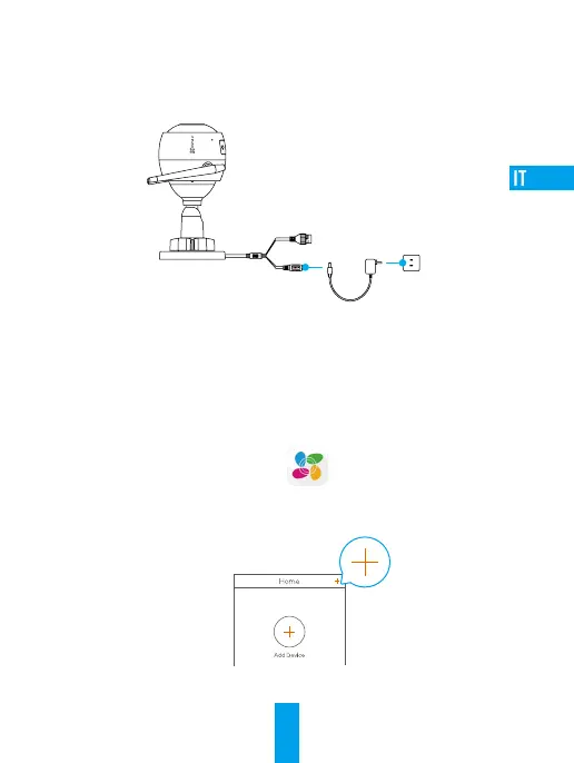 Collegare la telecamera alla presa di corrente con l'alimentatore, come mostrato di seguito.