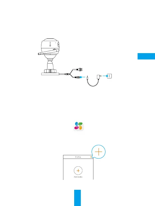 - Tik vanuit het startscherm van de EZVIZ-app op “+” in de rechterbovenhoek om naar de