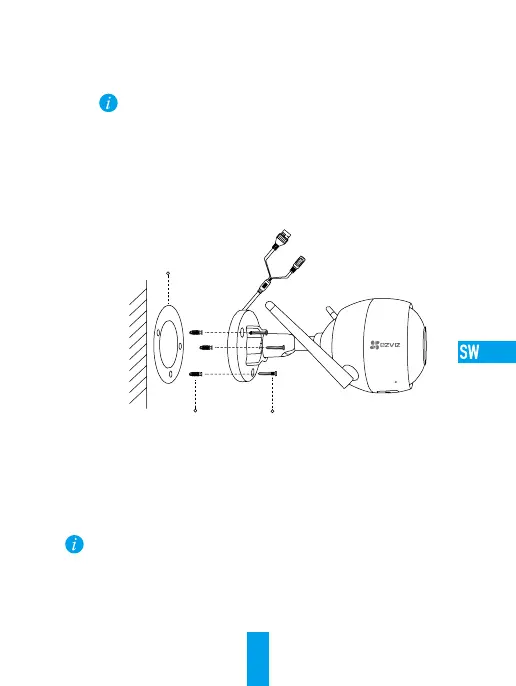 - Använd tre metallskruvar för att montera kamerans fäste i enlighet med mallen.