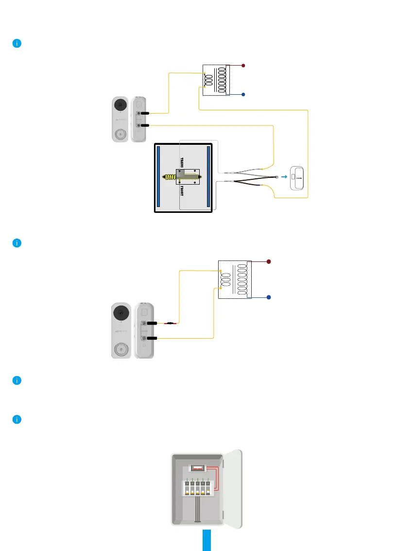 If you have mechanical chime or electronic chime installed in your home, install the power kit and doorbell, and connect the wires as shown in