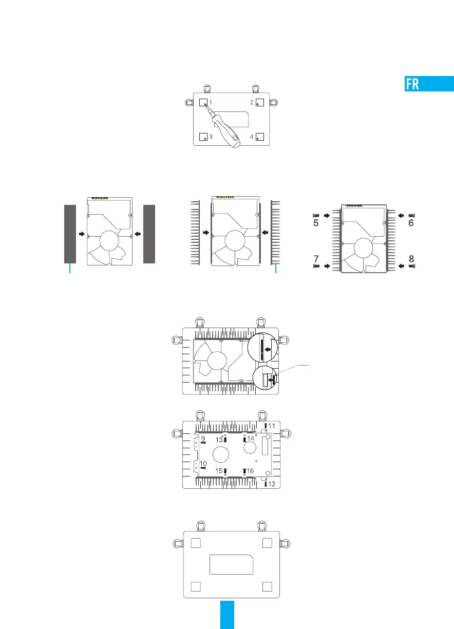 4. Utilisez les quatre vis pour fixer le radiateur sur le disque dur (comme illustré ci-dessous).