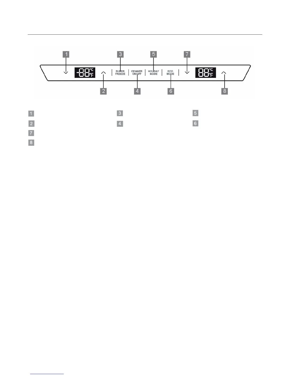)UHH]LQJGRZQDWWHPSHUDWLRQEXWWRQ 5DSLGIUR]HQPRGHEXWWRQ +ROLGD\PRGHEXWWRQ