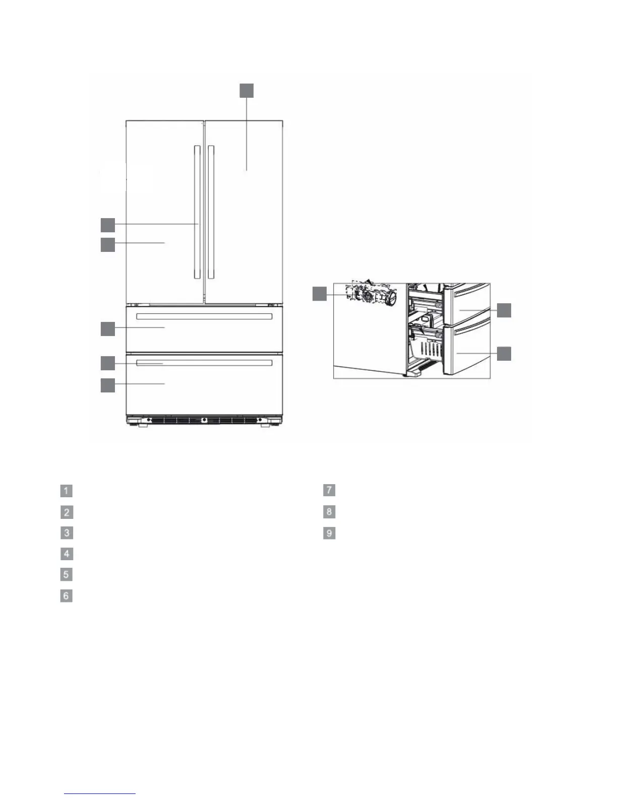 F.Bertazzoni REF36 X - Appliance Components Overview; Exterior Parts Identification; Freezer Drawer Identification