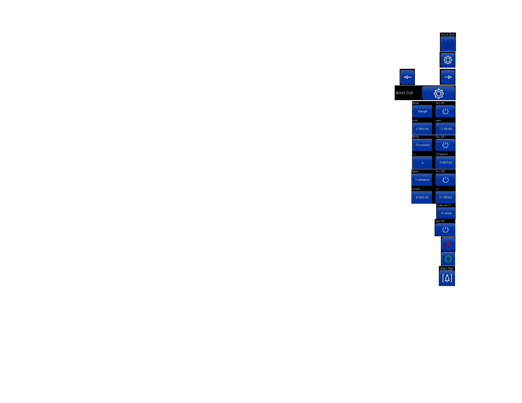 To enable ALERT SET, press On/Off after the mode and values are set ——————————————————————