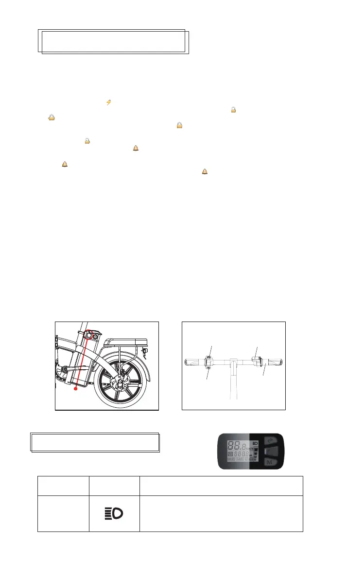 8.Headlight: ON/OFF on the left side of the handlebar is a light switch.
