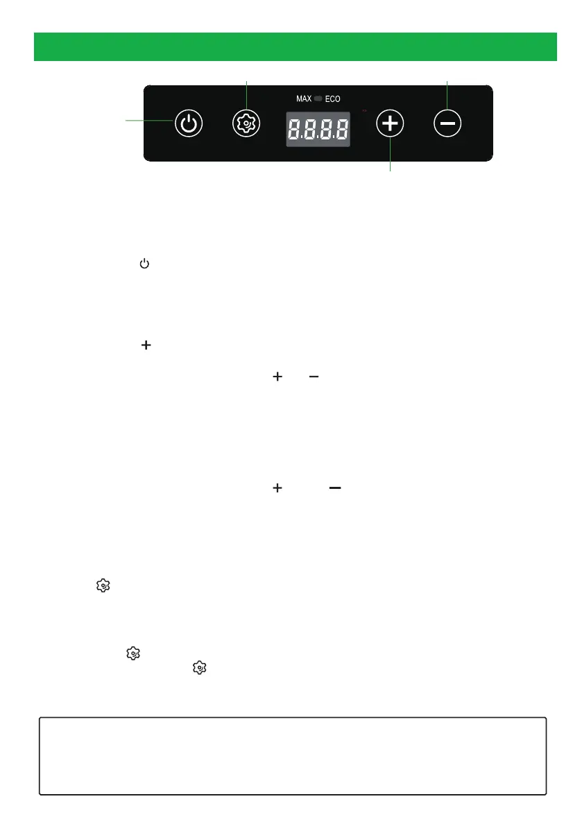 ① Short press the " " button to increase the temperature by 1 °C, the maximum temperature can