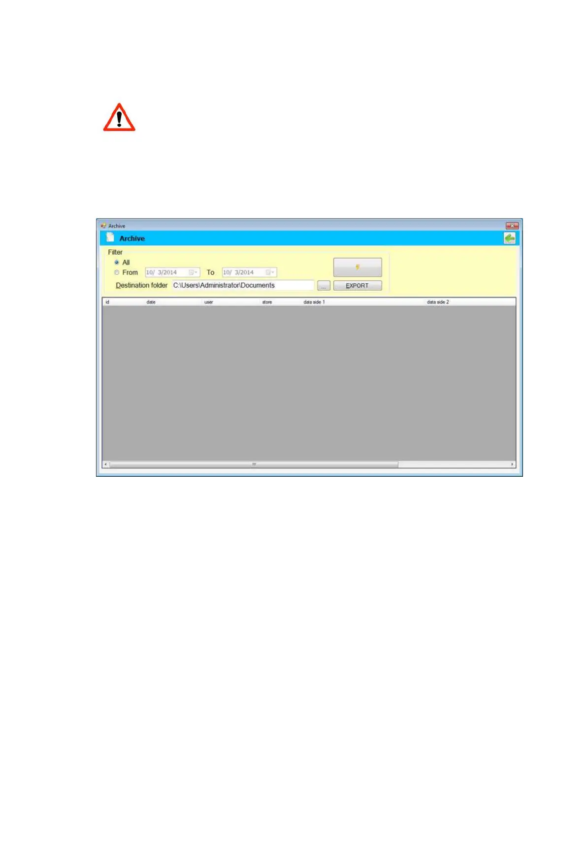 Selecting EXPORT, a file is generated and sent to the designated folder.