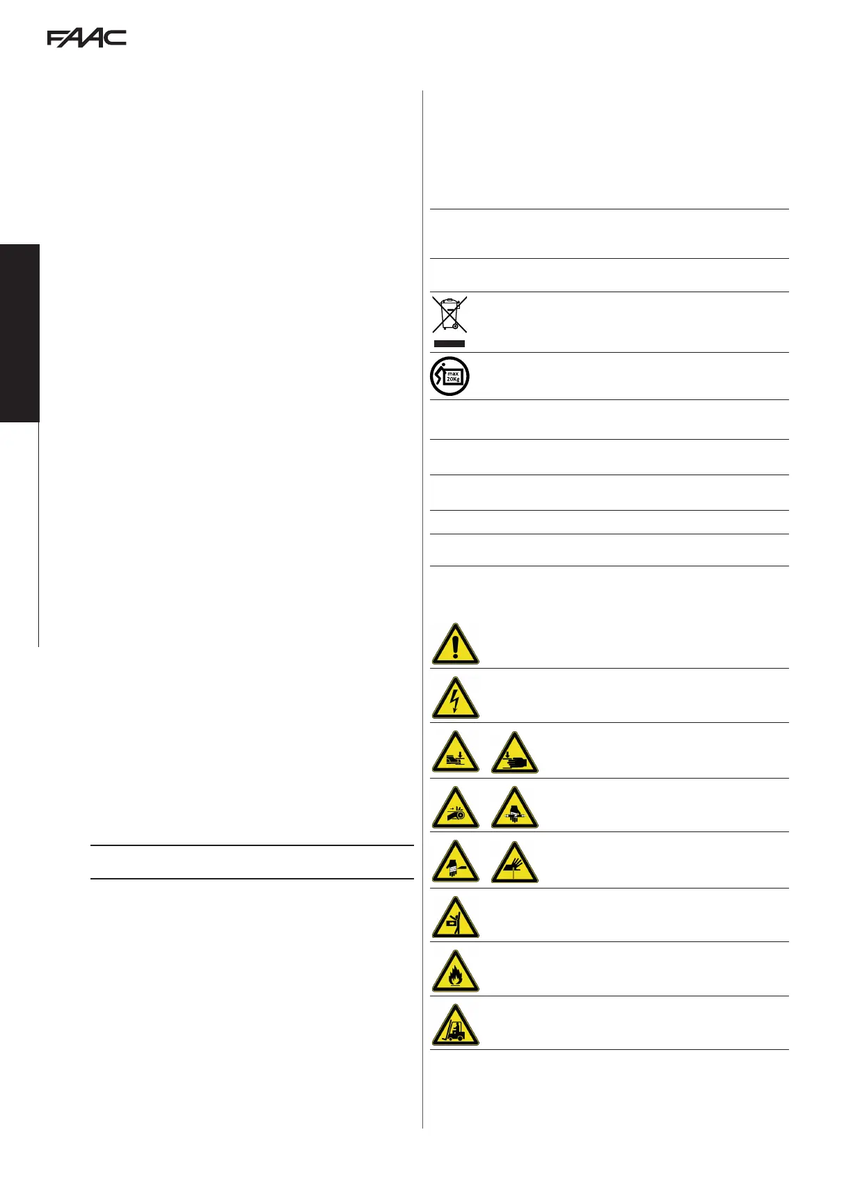 FAAC S.p.A. recommends that you always comply with the EN 12453