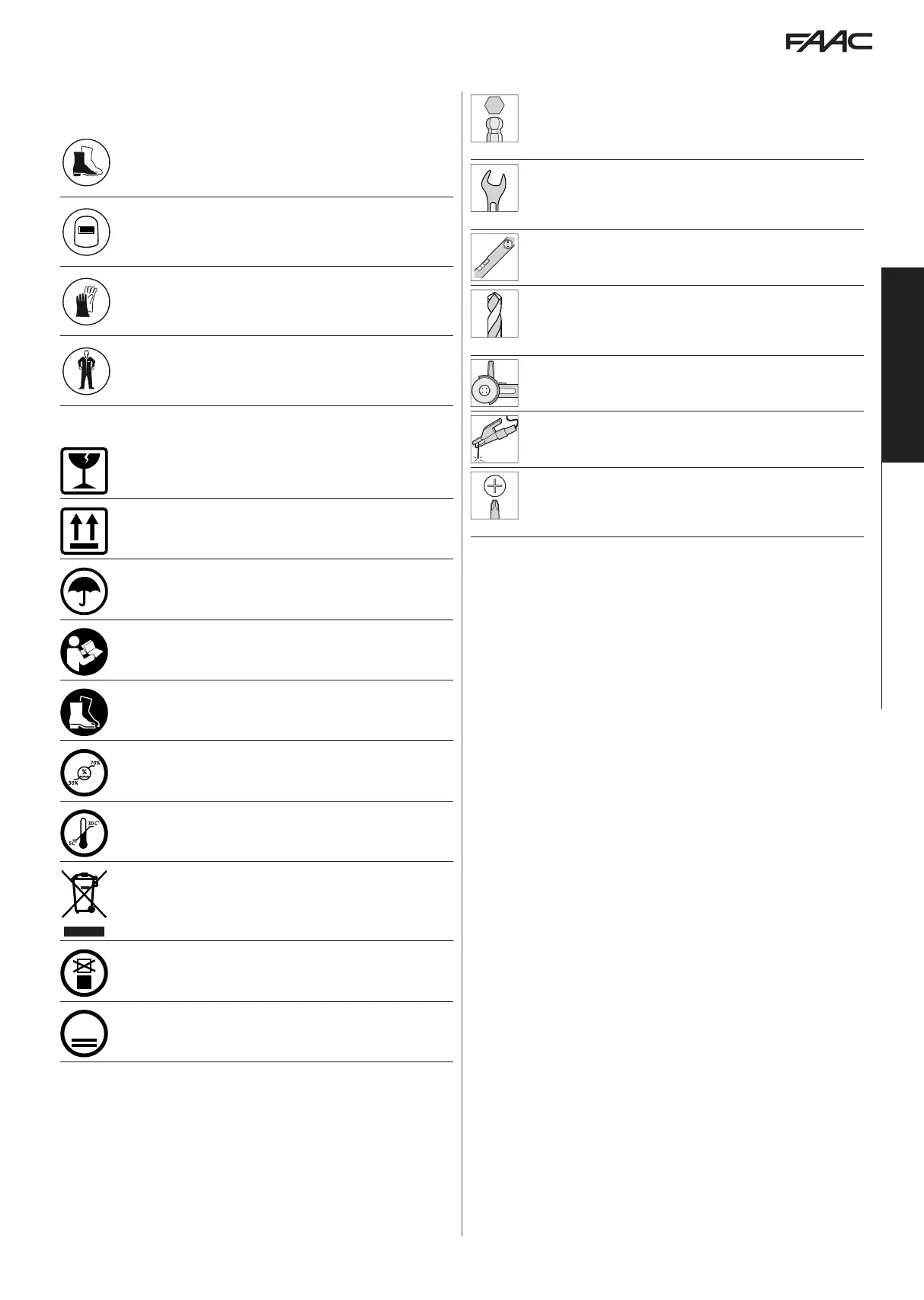 TOOLS (type and size)
