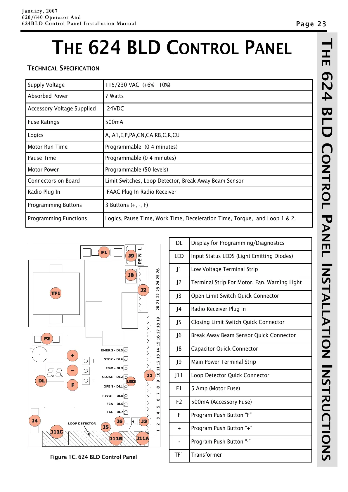 THE 624 BLD CONTROL PANEL INSTALLATION INSTRUCTIONS