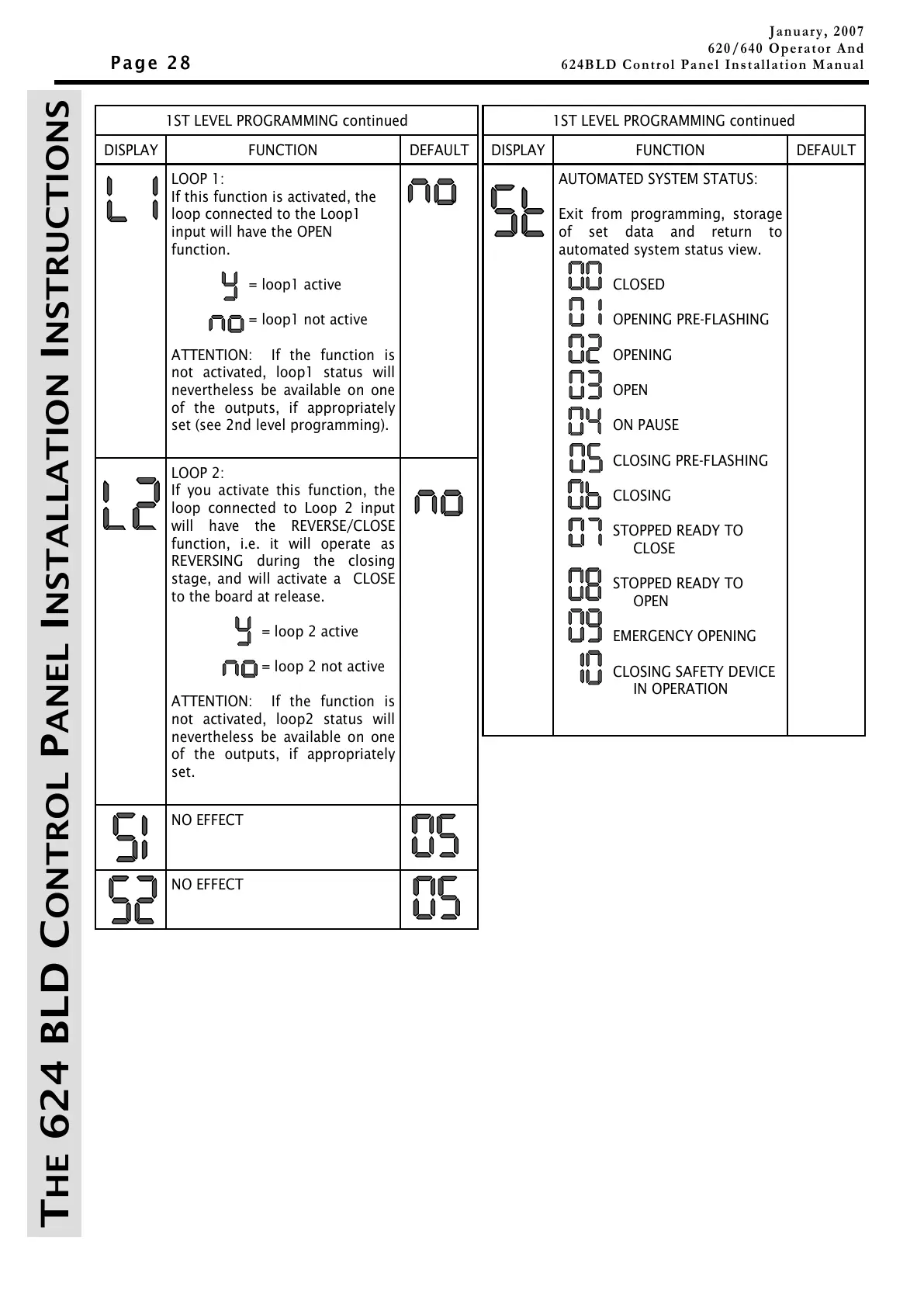 THE 624 BLD CONTROL PANEL INSTALLATION INSTRUCTIONS