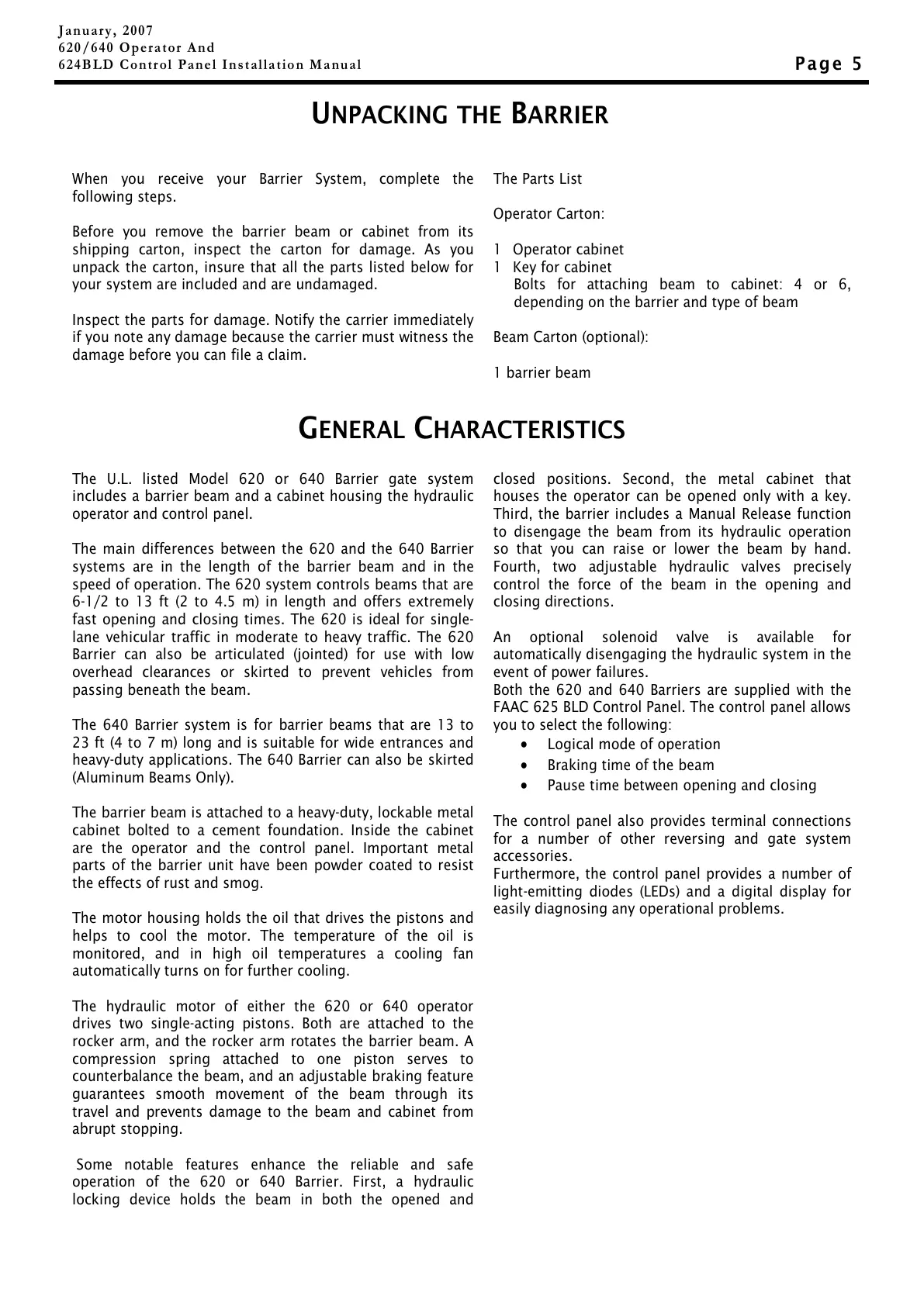 operation of the 620 or 640 Barrier. First, a hydraulic