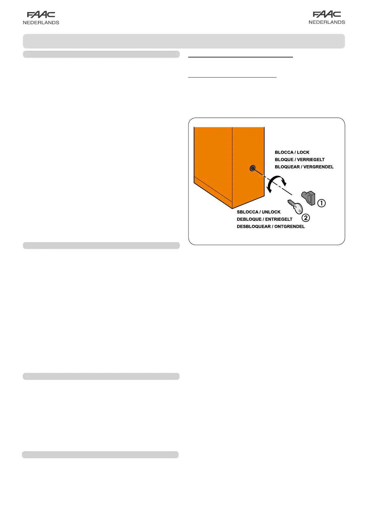 5) Gebruik voor het onderhoud uitsluitend originele FAAC-onderdelen.