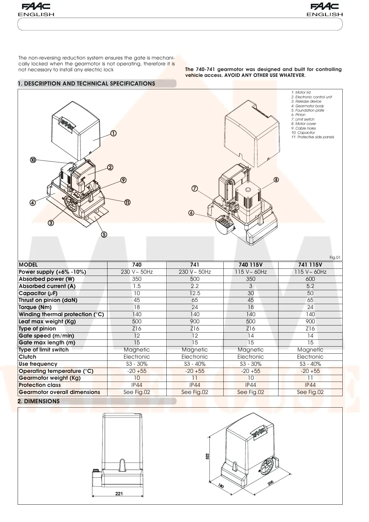 The 740-741 gearmotor is an electro-mechanical operator designed