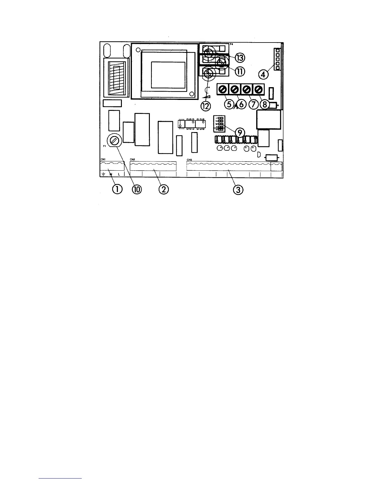 2 J2 terminal block for connecting the operator(s) 9 DIP switch assembly