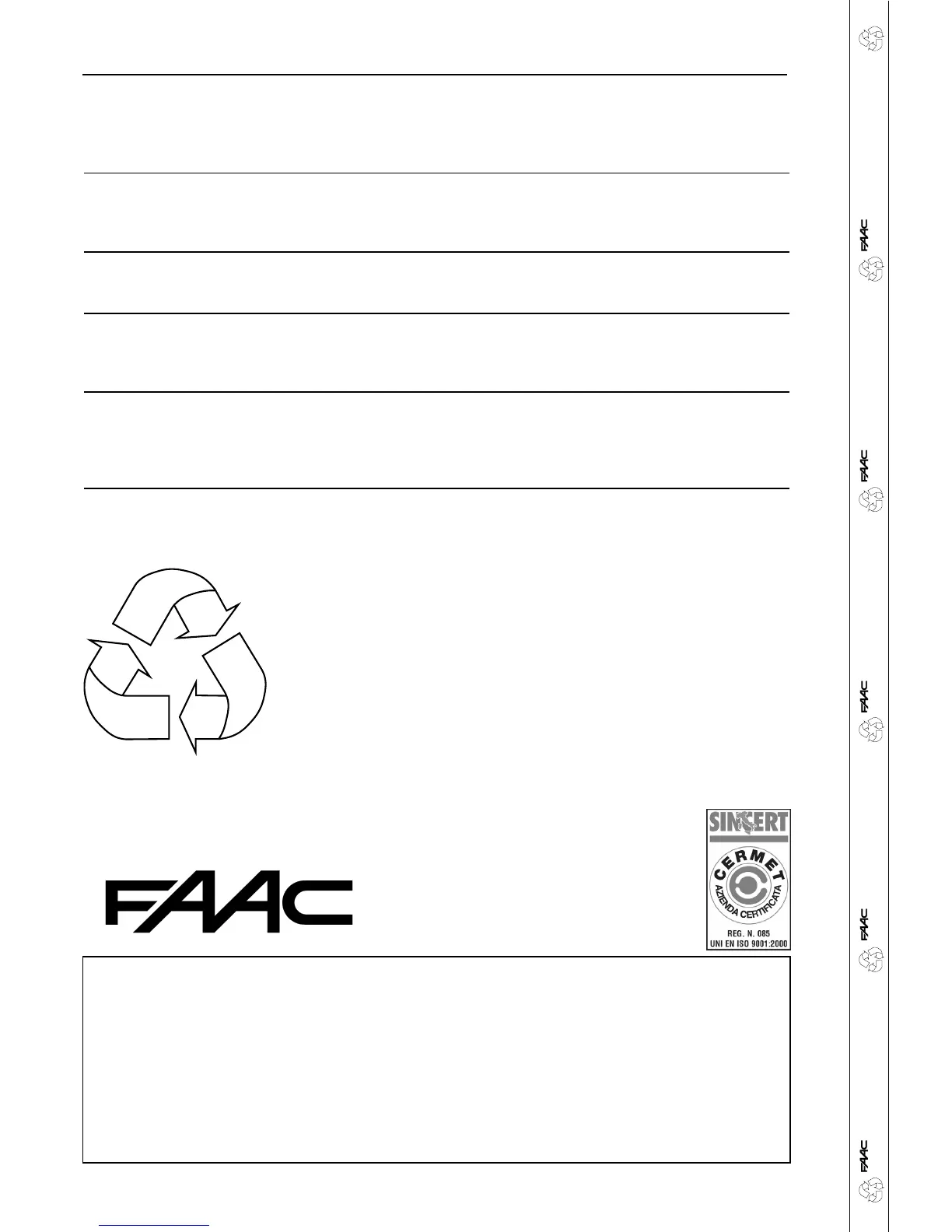 Le descrizioni e le illustrazioni del presente manuale non sono impegnative. La FAAC si riserva il diritto,