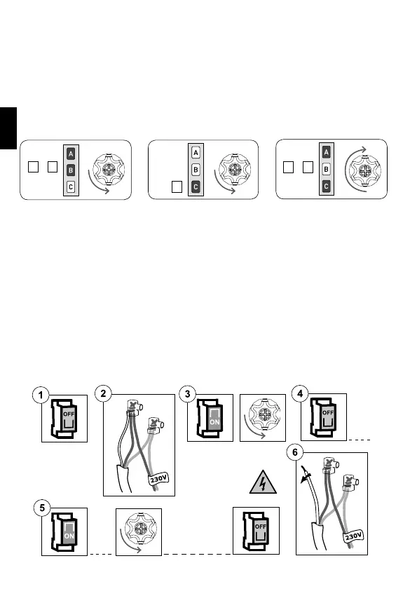 3) Die Versorgung des Motors anschließen, der eine kurze Drehung in eine Richtung