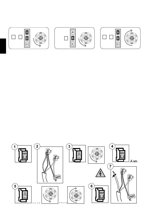 3) Die Versorgung des Motors anschließen, der eine kurze Drehung in eine Rich-