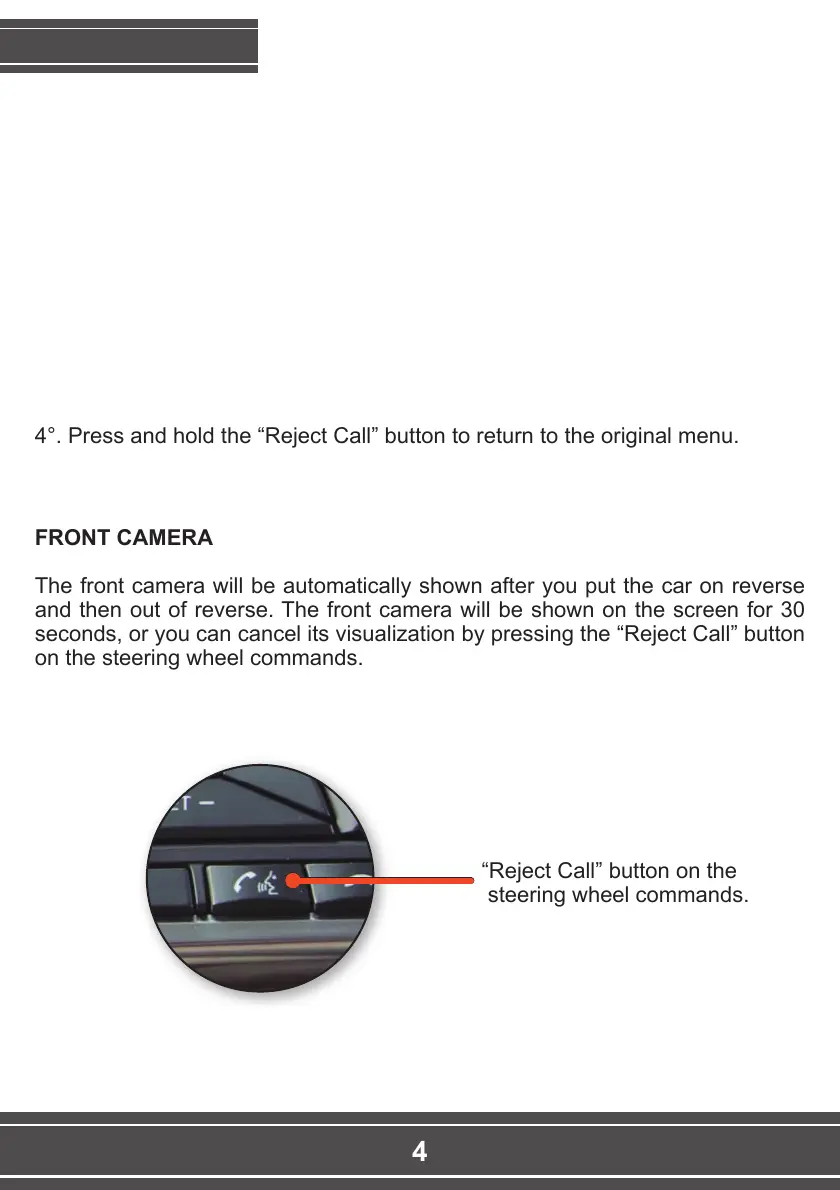 4°. Press and hold the “Reject Call” button to return to the original menu.