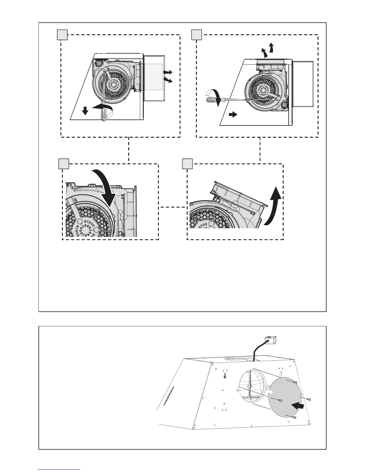 Use los dos tornillos (Posi-Drive) que se quitaron para asegurar el ventilador como se muestra en la Imagen d.