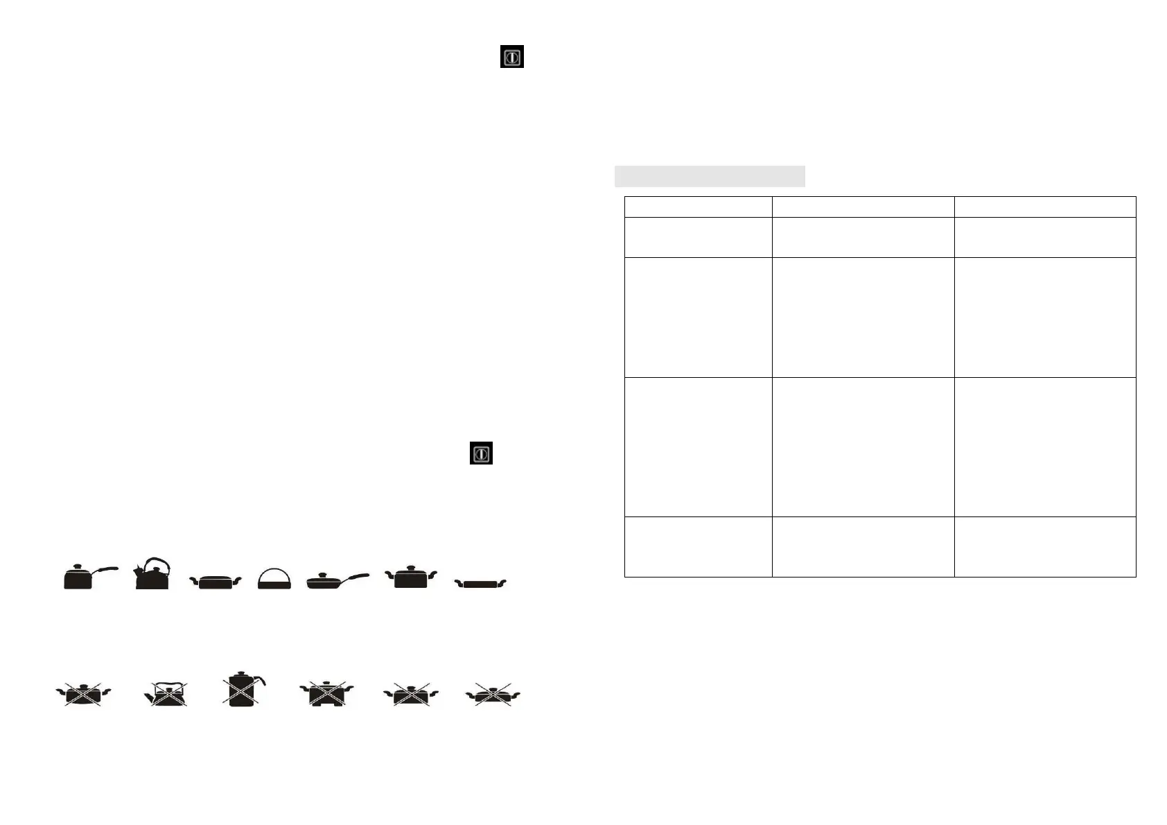 5). When take away the cooking pot during the working state, the induction cooker will make a sound “bi”,