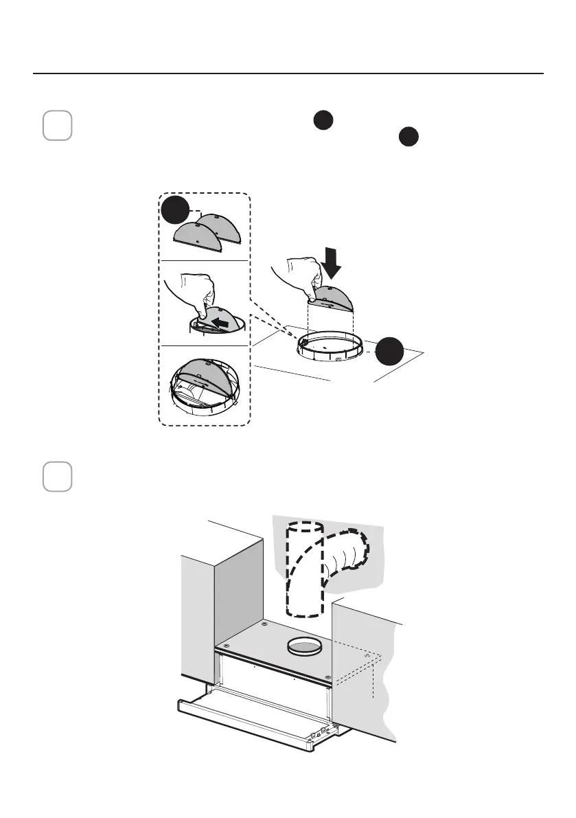 pestañas en su lugar dentro de la parte superior de la campana antes de