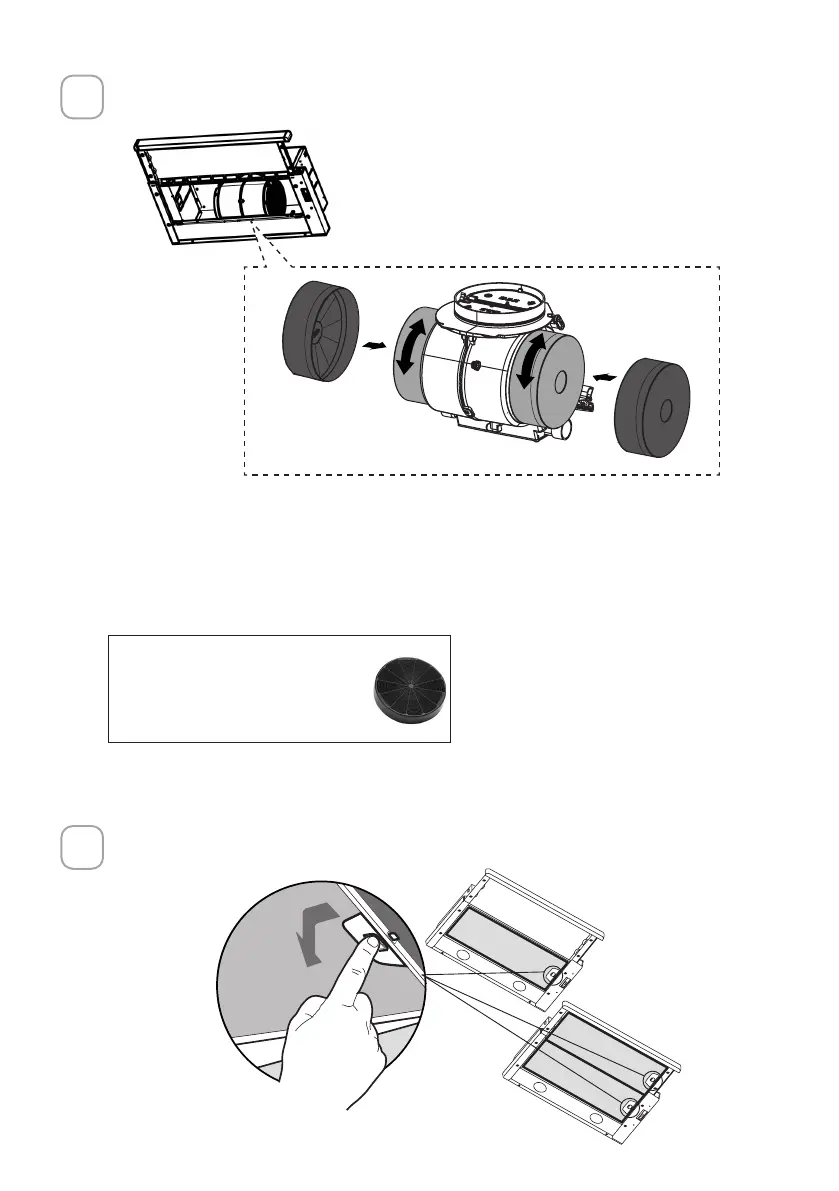 Presione el filtro de carbón con firmeza en la rejilla negra del lado del soplador