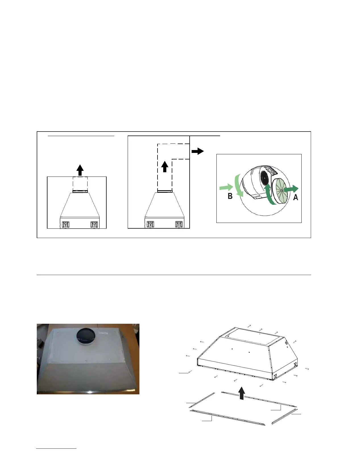 blower kit, on top of the rangehood with the hole closer to the back