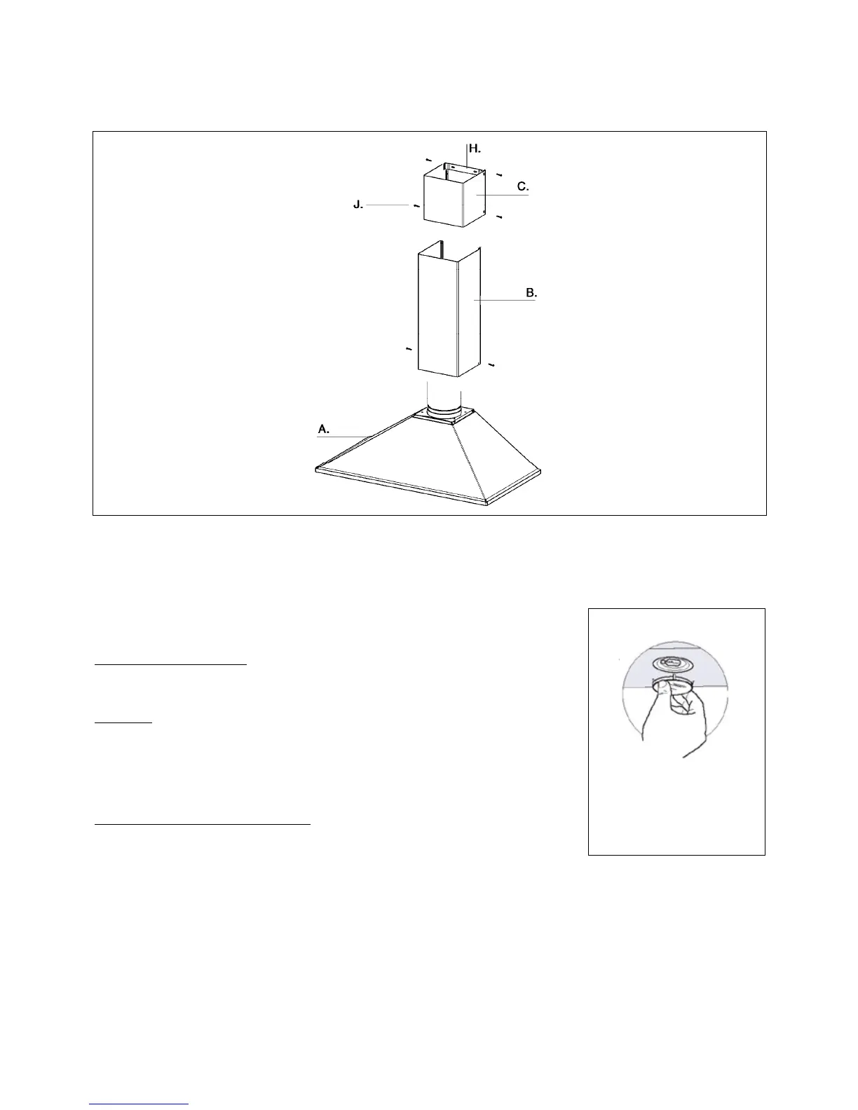 9. La cheminée doit être xée à la hotte. La section CHEMINÉE SUPÉRIEURE (C) doit être installée en premier, puis la section