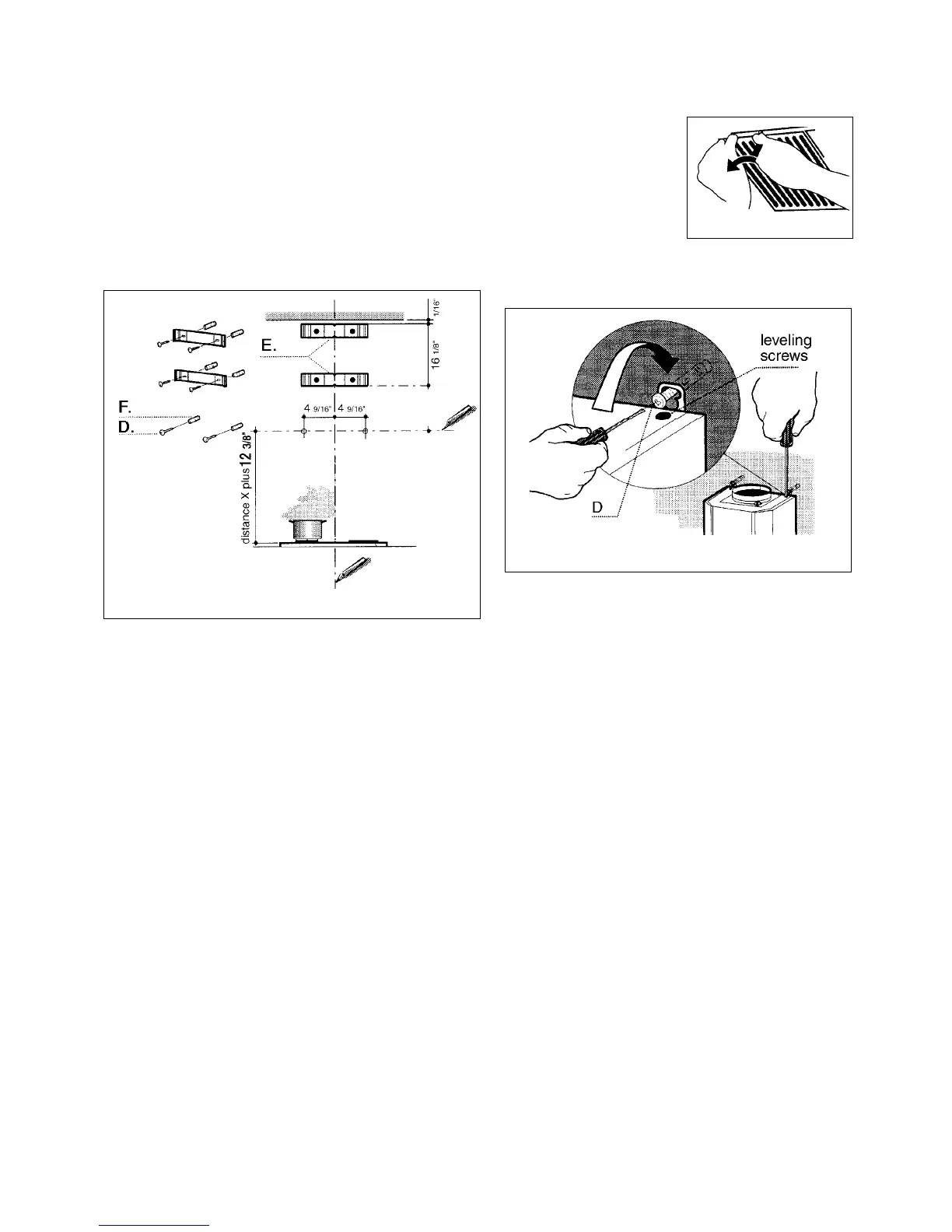 4. Posser le FIXATION DE CHEMINÉE (E) sur le mur 1/16 po