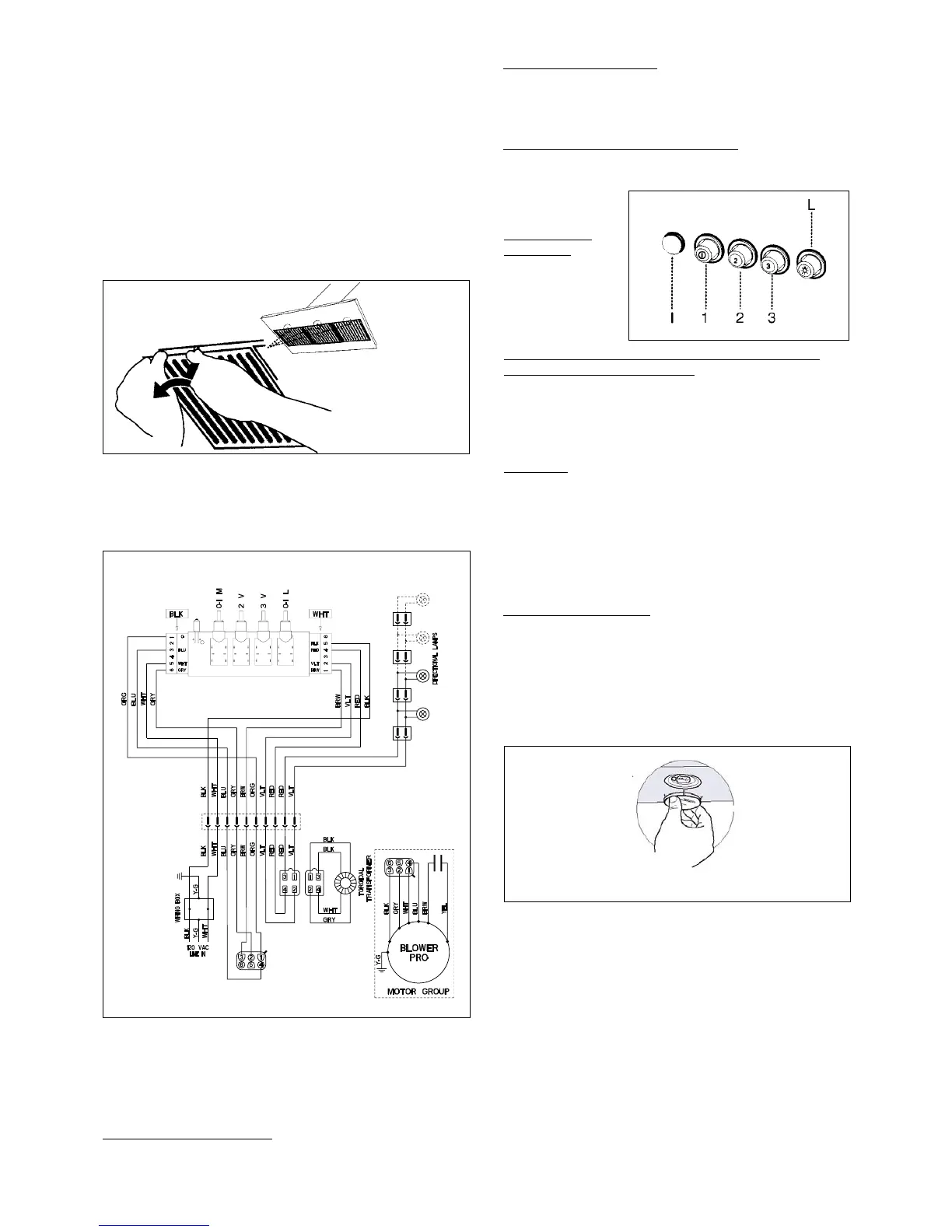 lʼavant de la hotte. Tirer sur le bouton et le tourner vers la gauche