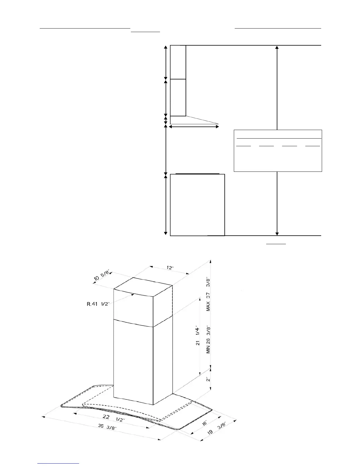 x = distance from hood to cooktop